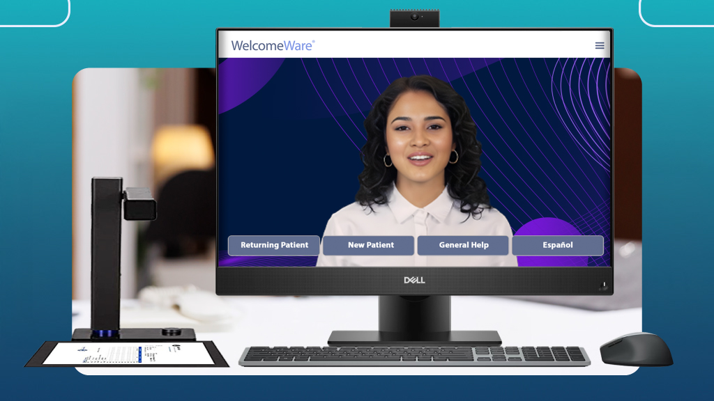 With integrated kiosk hardware, WelcomeWare enables instant scanning of IDs, insurance cards, and paper forms.