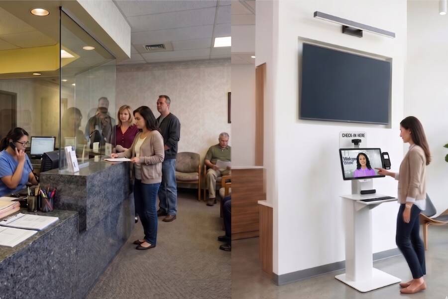 Optimized Patient Throughput: Modern digital check-in models reduce "front-desk friction"—the primary cause of lobby bottlenecks—by facilitating identity verification and co-pay collection before the patient even sits down.